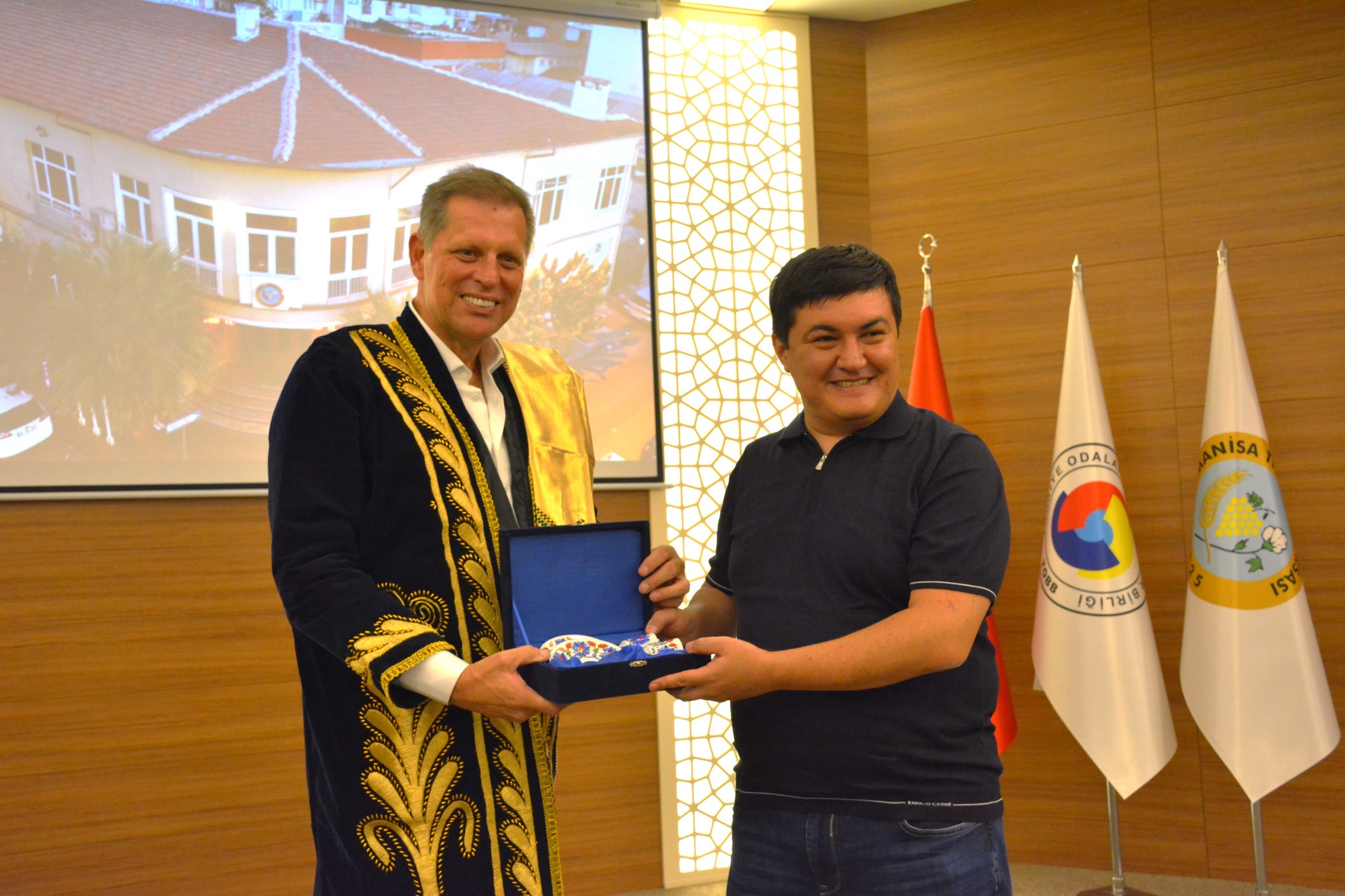 Ziyaretin sonunda, karşılıklı hediye takdimi yapıldı.