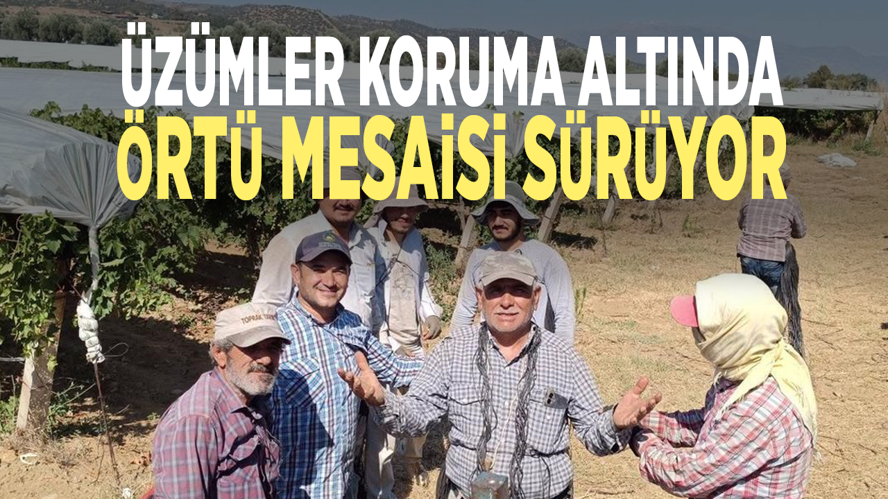 Gençlerden oluşan ekipler, sabahın erken saatlerinde bağlarda mesaiye başlıyor. Kendi aralarında oluşturdukları gruplarla sıraya aldıkları bağlarda örtü işlemlerini titizlikle sürdüren ekipler, bağların üzerini naylon brandalarla kaplayarak üzümleri doğal afetlere karşı koruma altına alıyor.