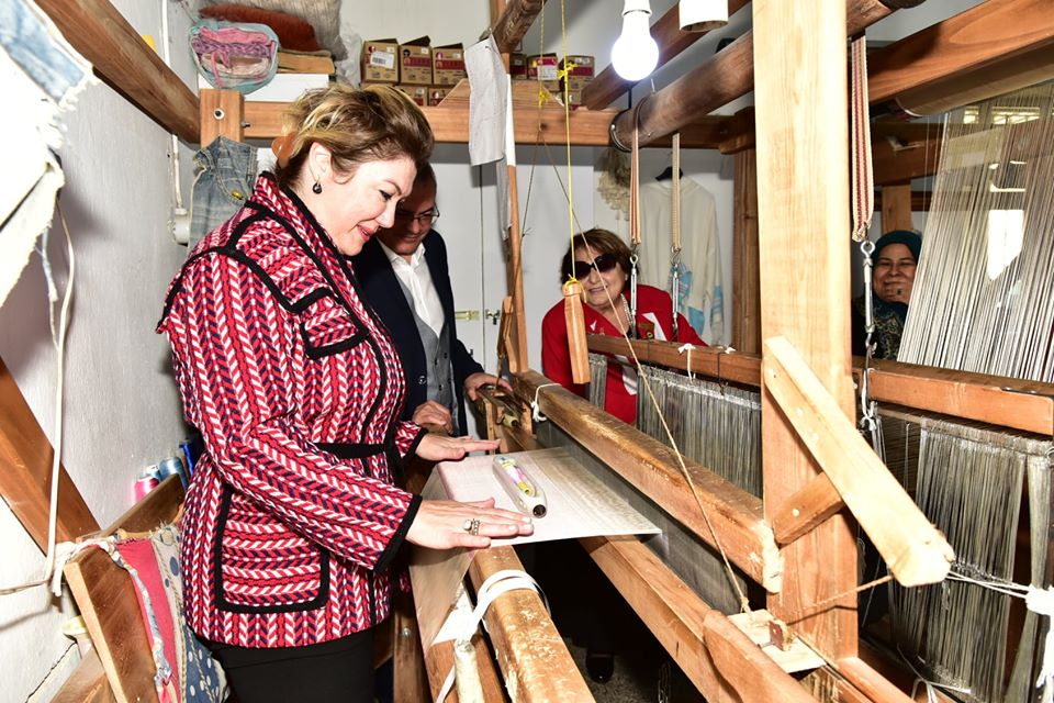 Ziyarette Şehzadeler Halk Eğitim Merkezi Müdürü Osman Kuşçuoğlu, Türk Kadınlar Konseyi Manisa Şubesi Başkanı Mübeccel Kafkaslı tarafından atölyede yapılan çalışmalar ve açılacak kurslar hakkında bilgi verilirken, Vali Deniz ve eşi dokuma tezgâhlarının başına geçerek kursiyerlerin yardımıyla ‘Manisa Bezi’ dokudu.