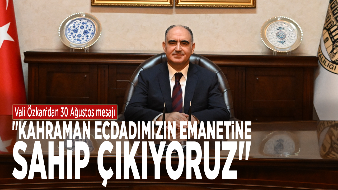 Vali Özkan, 30 Ağustos Zaferi’nin sadece bir askeri başarı değil, milletin sarsılmaz inancı, vatan sevgisi ve özgürlük tutkusunun ifadesi olduğunu ifade etti. Mesajında, "Bugün bize düşen görev, bu toprakları bizlere vatan kılan şehitlerimizin ve gazilerimizin emanetine sahip çıkmak; 30 Ağustos ruhunu anlamak, yaşatmak ve gelecek nesillere aktarmaktır." dedi.