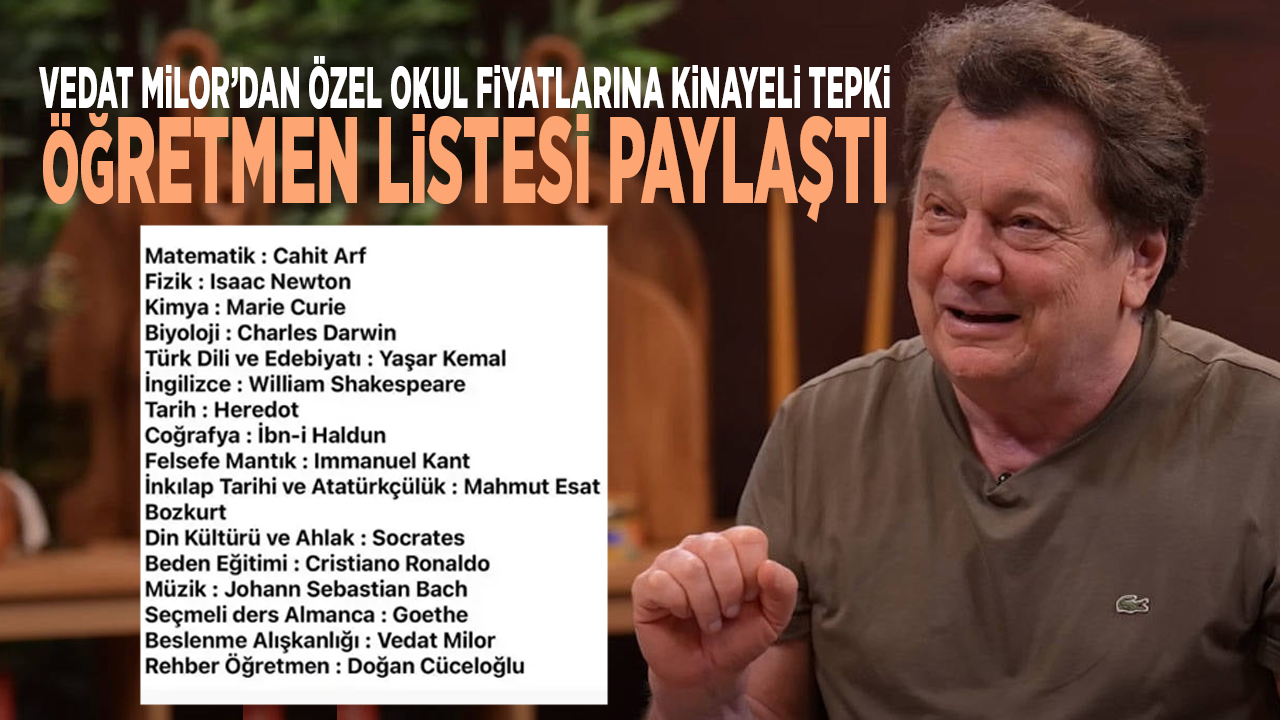 Yemek eleştirmeni ve sosyolog Vedat Milor, özel okul fiyatlarına kinayeli şekilde tepki gösterdi.