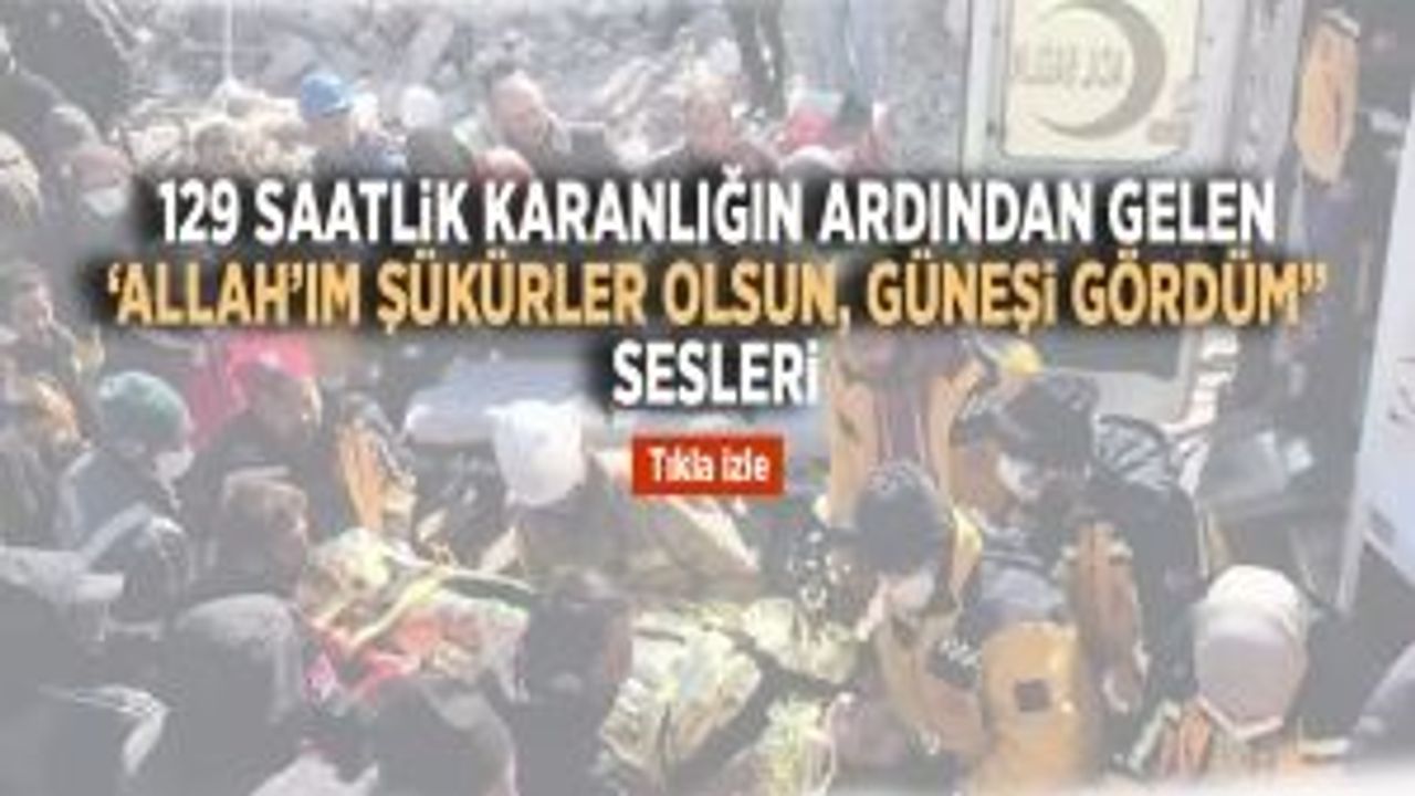 GAZİANTEP (İHA) - Gaziantep’in Nurdağı ilçesinde 129 saat mahsur kaldığı enkaz altından sağ olarak kurtarılan kadın, sedyeye taşınırken “Güneş, güneş, güneşi gördüm, Allah’ım sana şükürler...
