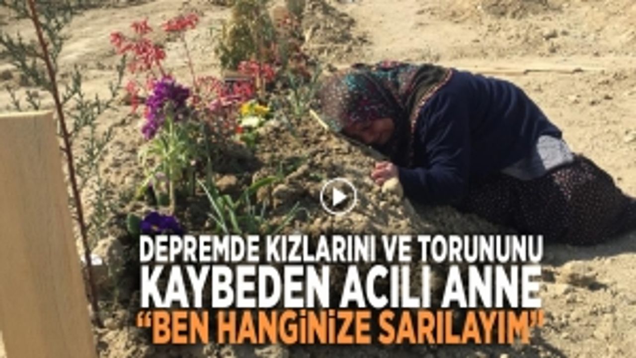 ADANA (İHA) - Depremde iki kızı, bir torunu ve damadını kaybeden annenin, mezara sarılıp öperek, “Ben hanginize sarılayım, hanginizle hasret gidereyim. Ben...