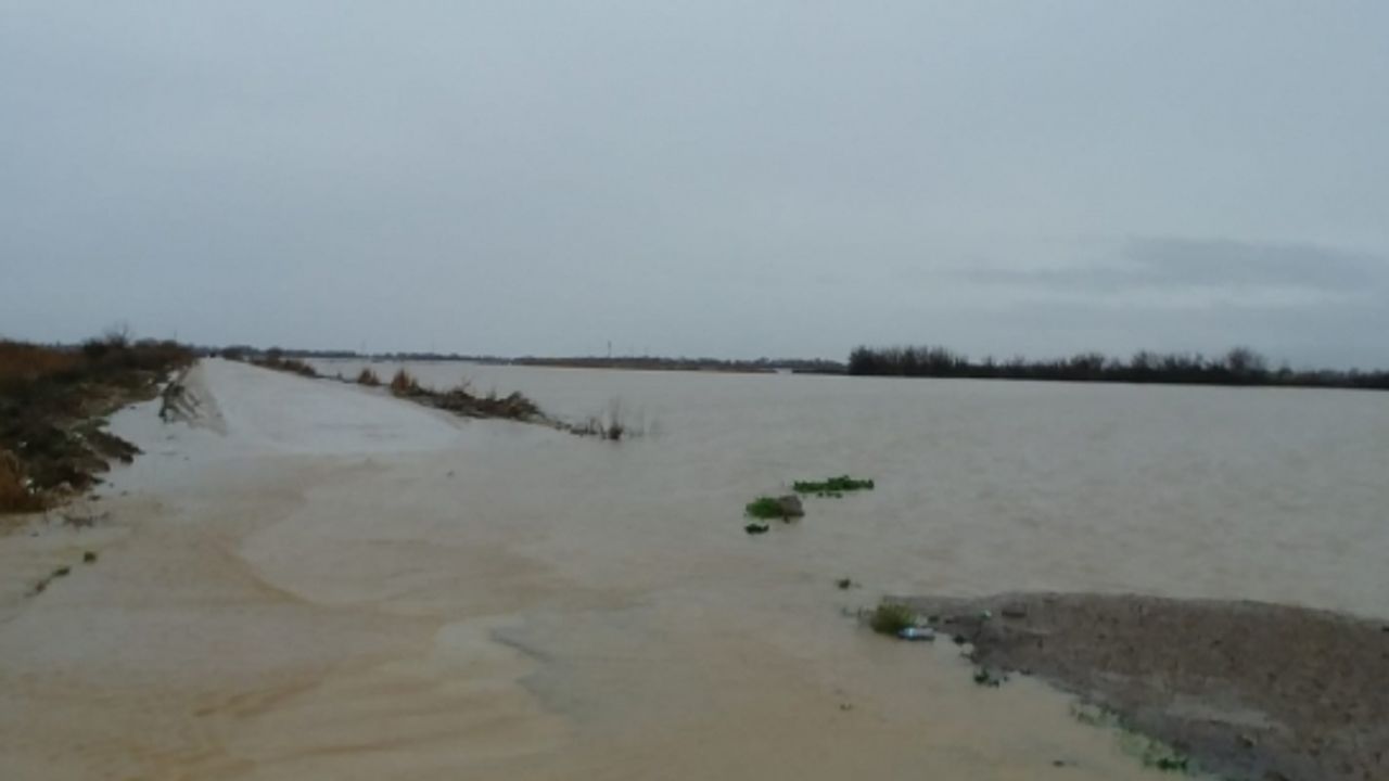 Yoğun yağış nedeniyle Gediz Nehri taştı, ova sular altında kaldı.