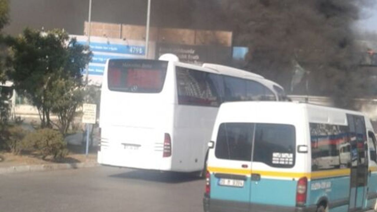 İzmir otogarında reklam panolarının bir anda alev alması paniğe neden oldu.