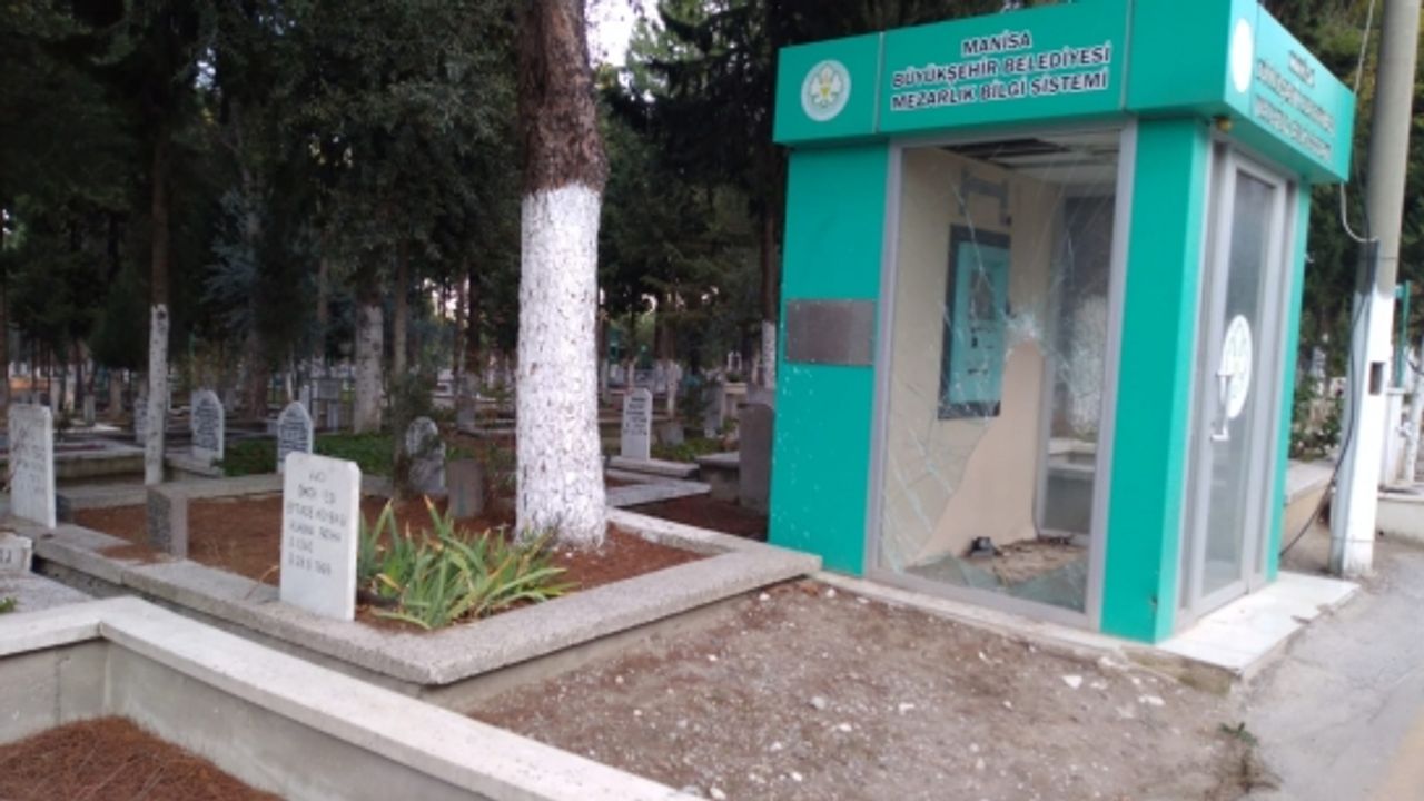 Manisa’da Büyükşehir Belediyesine ait Kırtık Mezarlığında bulunan Mezarlık Bilgi Sistemi kulübesine çirkin saldırı. Hem zarar verdiler, hem de klimaları çaldılar.