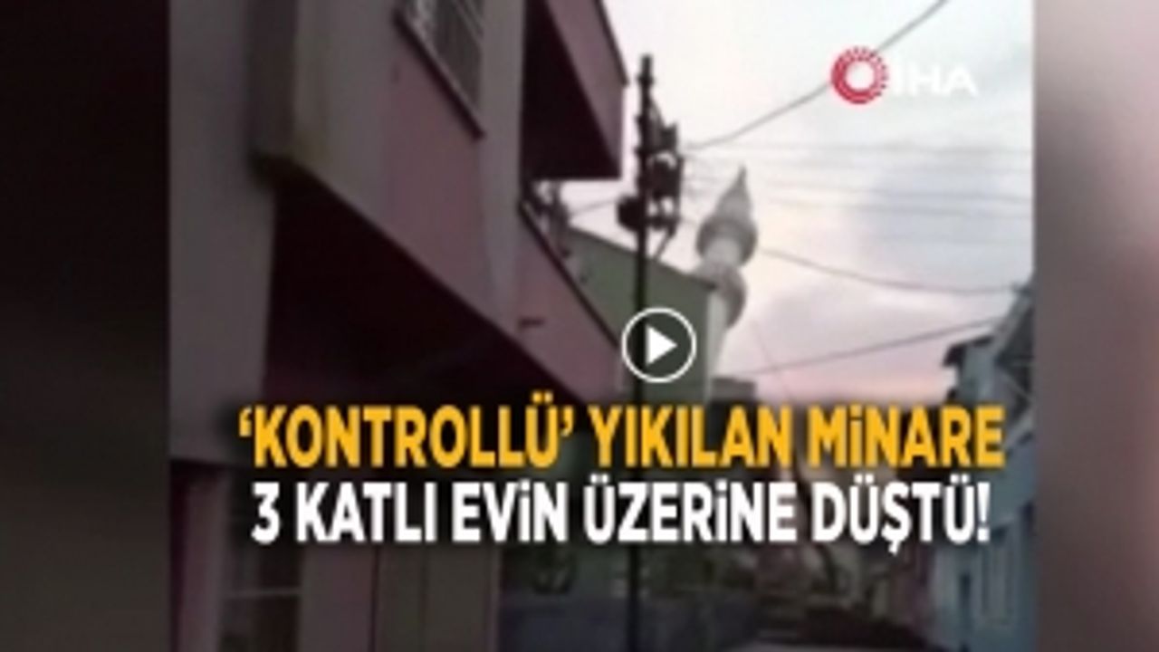 Kontrollü yıkılan minare 3 katlı evin üzerine düştü