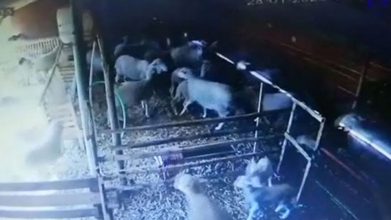 Manisa'nın Kırkağaç ilçesine bağlı Karakurt Mahallesi'nde dün meydana gelen 4.8 büyüklüğündeki deprem sırasında koyunların korkuyla hareket etmesi güvenlik kameralarınca kaydedildi.