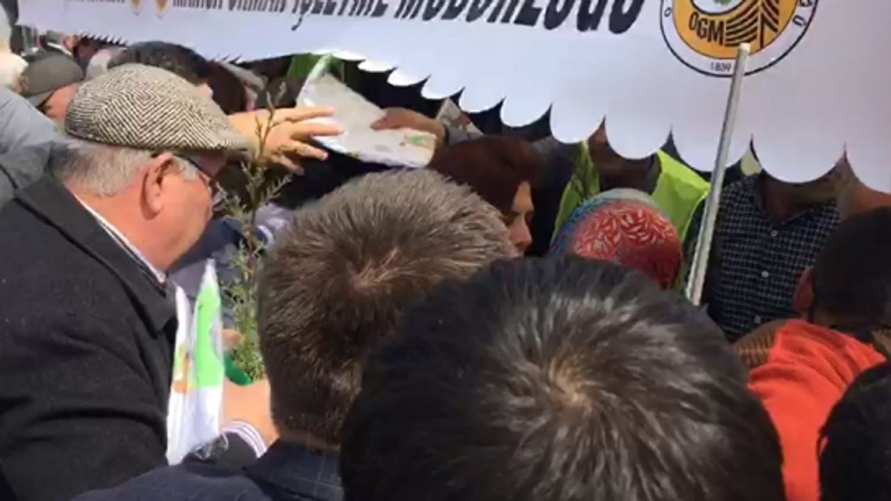 Cumhuriyet Meydanı’ndaki Nevruz kutlamaları esnasında Orman İşletme Müdürlüğü tarafından tişört, şapka ve fidan dağıtımı esnasında vatandaşlar izdihama neden oldu.