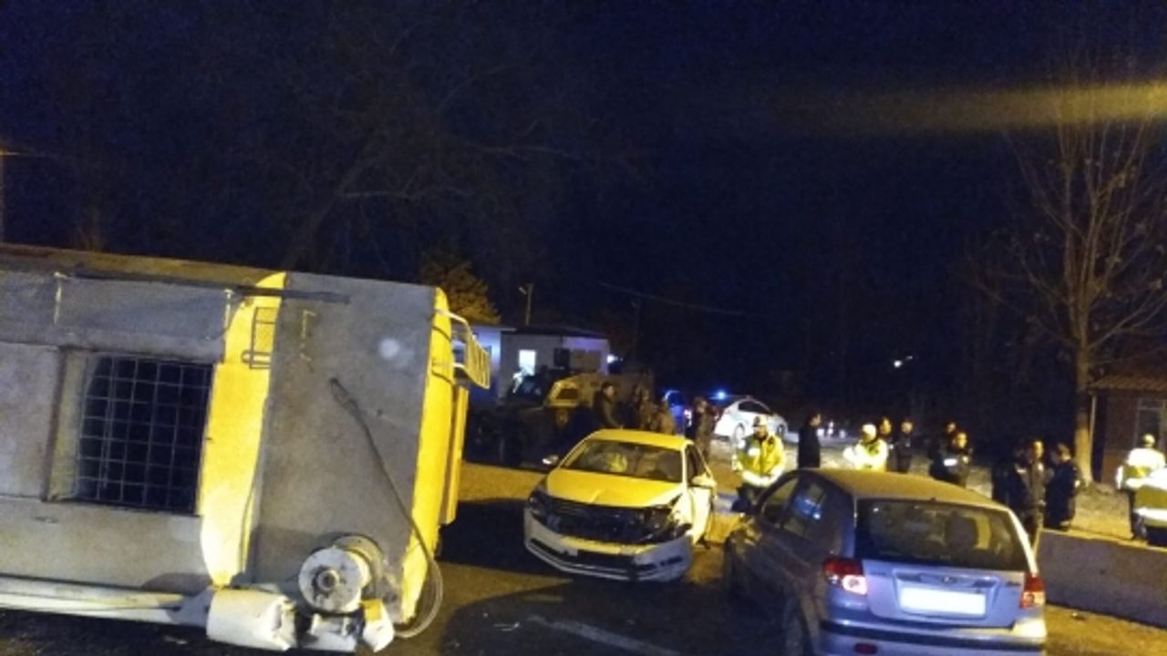 Seyir halindeki tır, kontrolden çıkarak karşı şeride geçti. Turgutlu yolundaki polis uygulama noktasında dört araca çarpan tur devrildi. Görevli polislerin ve sürücülerin büyük şok yaşadığı kazada 3 kişi yaralandı.
