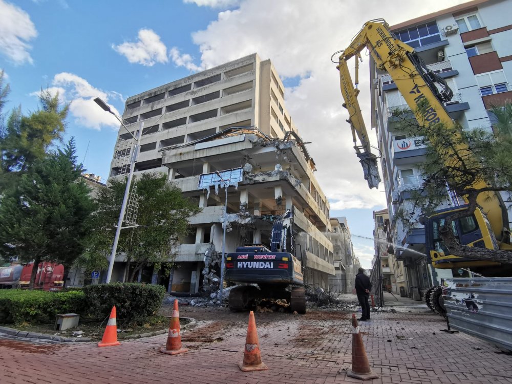 Manisa’da halk arasında Taç Bina olarak bilinen 10 katlı bina yıkılıyor. Manisa'nın Şehzadeler ilçesinde yer alan ve Vali Rafet Üçelli döneminde İl Özel İdaresi tarafından 1985-1986 yılları arasında yapılan Taç Bina’da yıkım işlemleri hız kazandı. İhaleyi alan firma Taç Bina’da söküm işlemlerini tamamladı, güvenlik önlemlerini alarak binanın yıkımı gerçekleşiyor.