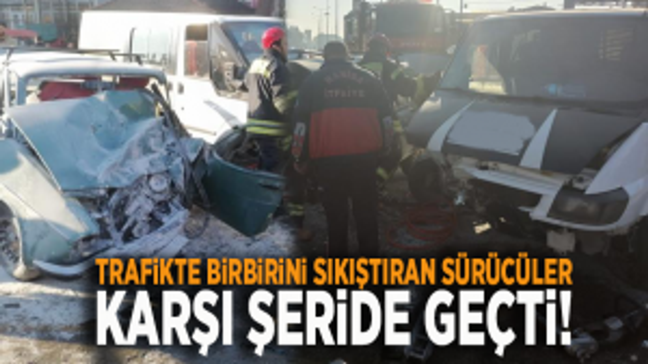 Trafikte birbirini sıkıştıran sürücüler karşı şeride geçti: 3 yaralı
