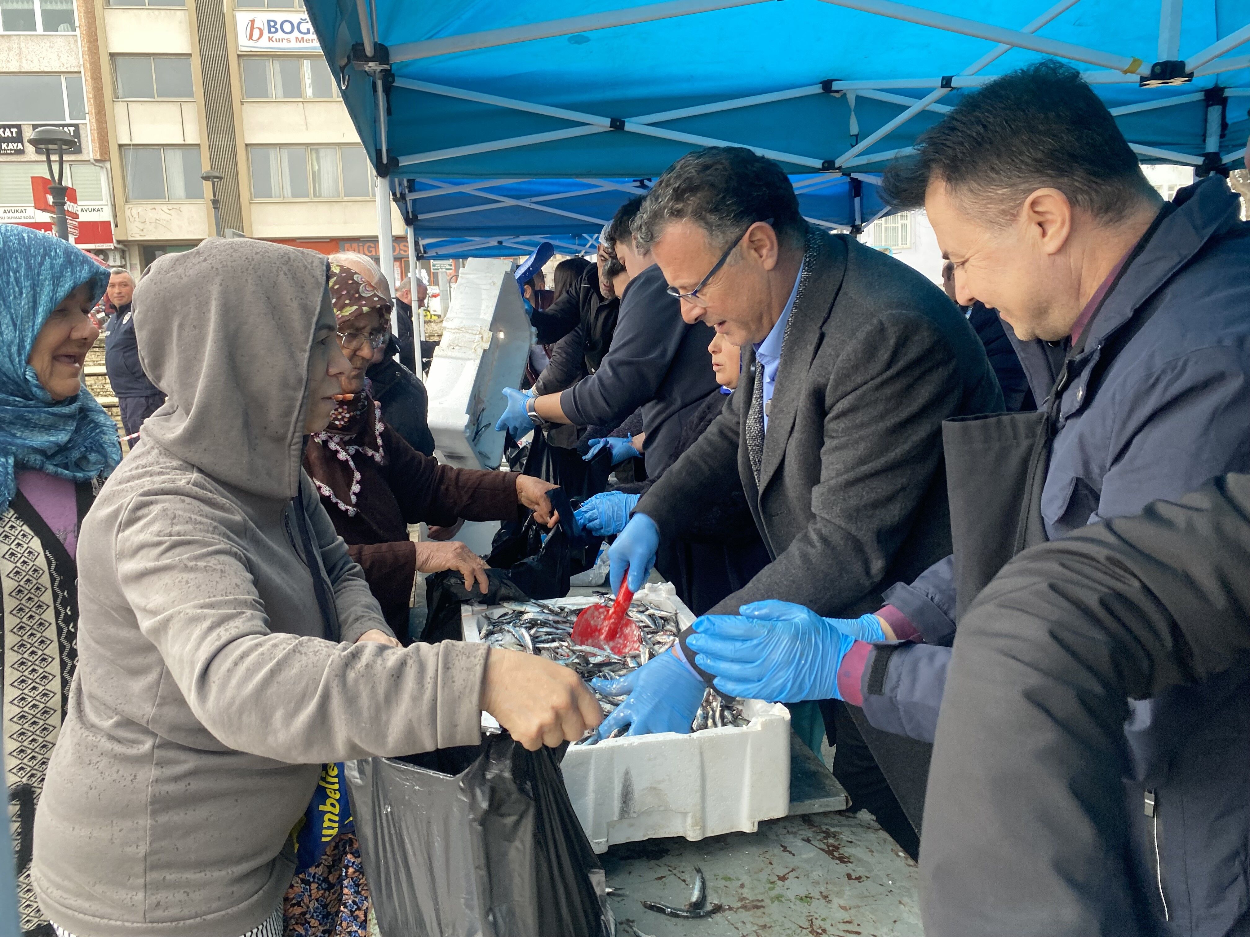 Şiddetli yağışa rağmen sıradan ayrılmayan vatandaşlar, dağıtımın başlamasıyla birlikte hamsilere kısa sürede ulaştı. Etkinlik kapsamında kişi başına ortalama 2 kilogram hamsi verildi. Yaklaşık 4 bin vatandaş ücretsiz balık alırken, 8 ton hamsi sadece 1 saat içinde tükendi.