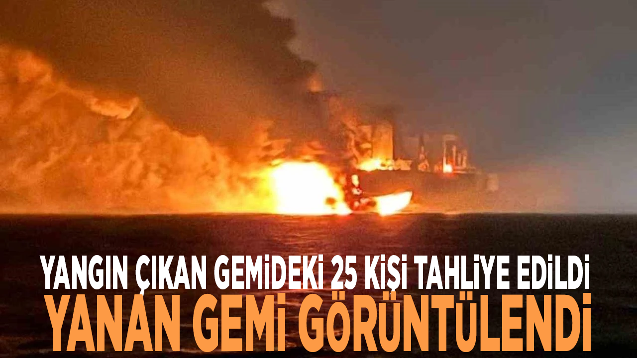 Öte yandan, yabancı menşeli gemide çıkan yangına ilişkin görüntülere ulaşıldı.