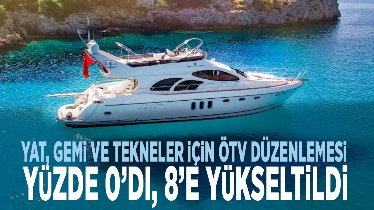 Yatlar, kotralar, tekneler ve gezinti gemileri için uygulanacak özel tüketim vergisi (ÖTV) oranı yüzde 8 olarak belirlendi.