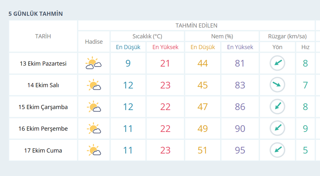 MANİSA İÇİN 5 GÜNLÜK HAVA TAHMİNİ