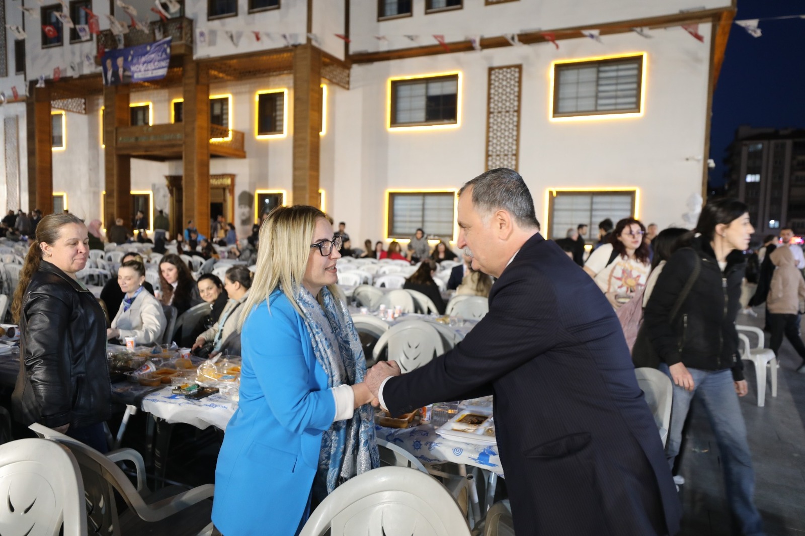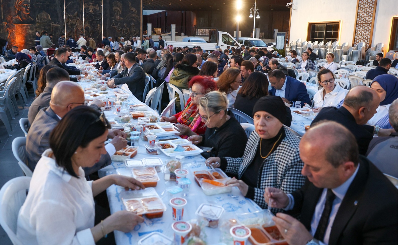 Yunusemre Belediye Başkanı Semih Balaban, 100. Yıl Meydanı’nda kurulan iftar yemeğinde belediye personeliyle bir araya geldi.