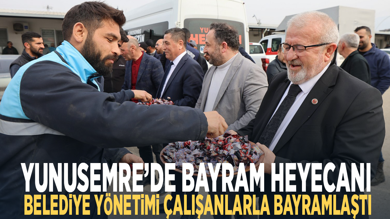 İlk olarak Yunusemre Belediyesi Şantiyesinde başlayan bayramlaşma programında çalışanlara iyi bayramlar dilendi. Şantiye bayramlaşmasının ardından belediye hizmet binasında birimleri ziyaret eden Belediye Başkanvekili Mehmet Mesut Doğan ve başkan yardımcıları personelinin aileleriyle sağlık ve huzur içinde bir bayram geçirmelerini diledi.