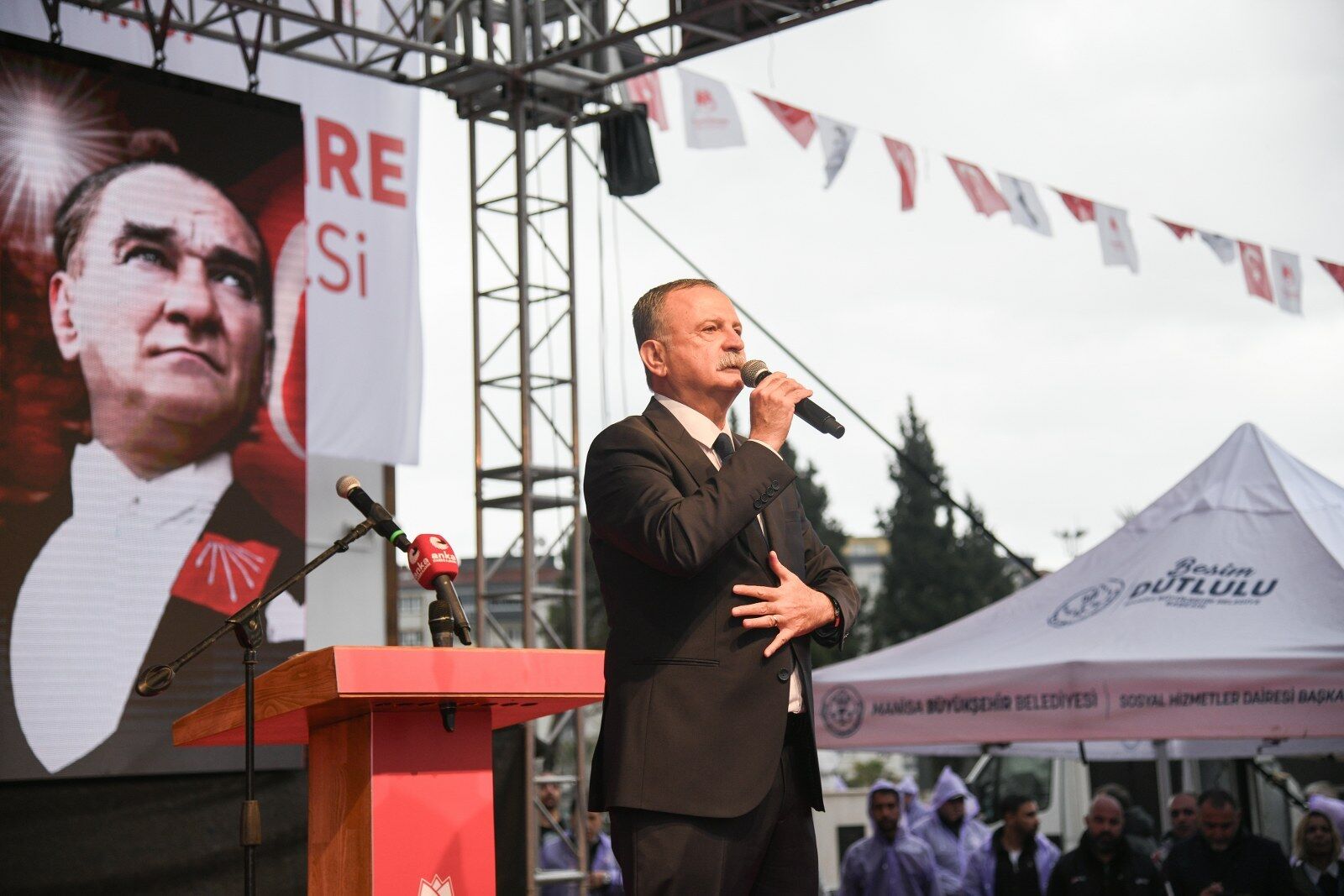 Yağışlı havaya rağmen kendilerini yalnız bırakmayan hemşehrilerine teşekkür eden CHP Genel Başkanı Özgür Özel, yapılan hizmetlerin takdir topladığını ifade ederek Yunusemre Belediye Başkanı Semih Balaban’ı kutladı. Konuşmasında yol arkadaşları Ferdi Zeyrek ve Gülşah Durbay’ı anan CHP Genel Başkanı, “Bu şehirde en son, biraz önce burada o gün Yunusemre adayı olan, o gün Akhisar'da yola çıkan, şimdi sizlere hitap eden iki başarılı belediye başkanımızla ve o gün Şehzadeler'e aday olan rahmetli Gülşah'ımızla, o gün büyükşehir adayı olan kardeşim Ferdi Zeyrek'le birlikte yüzde 60'ı hep beraber aldık. Resimleri orada, Allah gani gani rahmet eylesin, yola çıktık. Manisa merkezde üç belediye başkanı vardı. Doğduğumuz, büyüdüğümüz şehirde; doğduğum ilçede Gülşah'la Ferdi'ye oy verdiniz. Yaşadığımız ilçede burada Semih Başkanımız var... Bir yerlerden bizi izliyorlar; o güler yüzleriyle, o tertemiz kalpleriyle, bıraktıkları inanılmaz anılarla... Allah gani gani rahmet eylesin dedi.