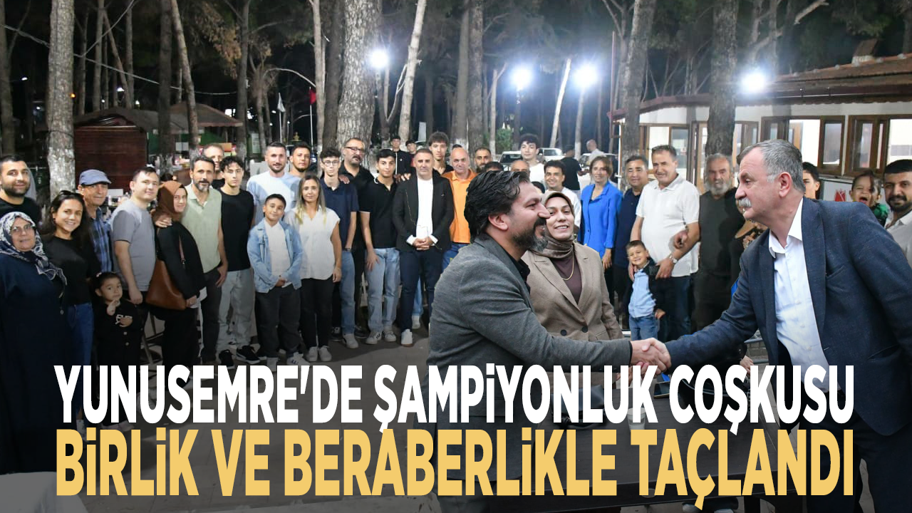 Türkiye Şampiyonu olan Yunusemre Belediyespor U17 Futbol Takımı, şampiyonluk organizasyonunda bir araya geldi. Süreyya Tabiat Parkı'nda gerçekleştirilen etkinlikte şampiyonluk coşkusu birlik ve beraberlik içinde yaşandı. Programa; Yunusemre Belediye Başkanı Semih Balaban, Belediye Başkan Yardımcıları Hakan Gürtunca, Emine Özge Arslan, Haydar İzci, Kulüp Başkanı Bülent Kanik ve yöneticiler, MAYEB Genel Müdürü İlhan Düzenli, Organizasyon AŞ Genel Müdürü Cahit Kaplan, CHP Yunusemre İlçe Başkanı Yalçın Arcak ve sporcu aileleri katıldı.