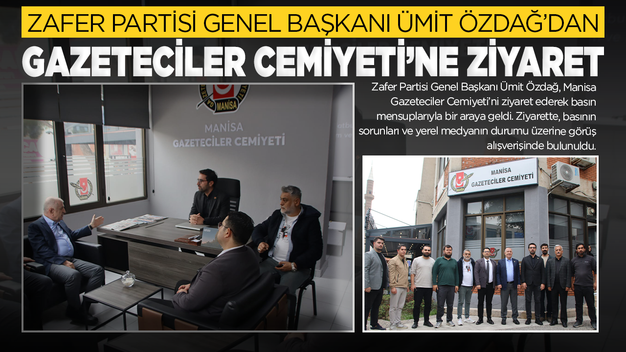 Zafer Partisi Genel Başkanı Ümit Özdağ, Manisa temasları kapsamında Manisa Gazeteciler Cemiyeti’ni ziyaret etti. Ziyarette, Cemiyet Başkanı Önder Aydın ve yönetim kurulu üyeleri hazır bulundu. Cemiyet Başkanı Önder Aydın, ziyaretten duyduğu memnuniyeti dile getirerek, yerel basının önemine dikkat çekti. Ümit Özdağ ise basın mensuplarının sorunlarını dinledi ve görüşlerini paylaştı.